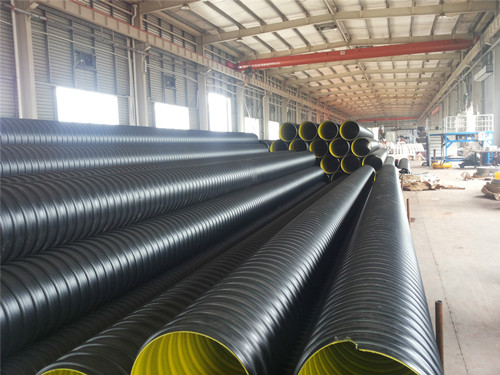 鋼帶波紋管是借鑒好的金屬塑料管材復(fù)合技術(shù)而的一種PE與鋼帶熔融復(fù)合的纏繞成型的結(jié)構(gòu)壁管材。管壁結(jié)構(gòu)由3個(gè)層次構(gòu)成,以高密度聚為基體,以螺旋纏繞成型的高密度鋼帶為增強(qiáng)體,采用的工藝,將鋼帶與高密度聚融為一體,使其既具有塑料管的柔韌性,又具備金屬的剛性。